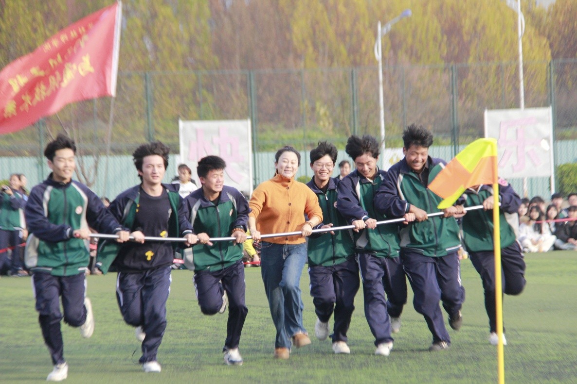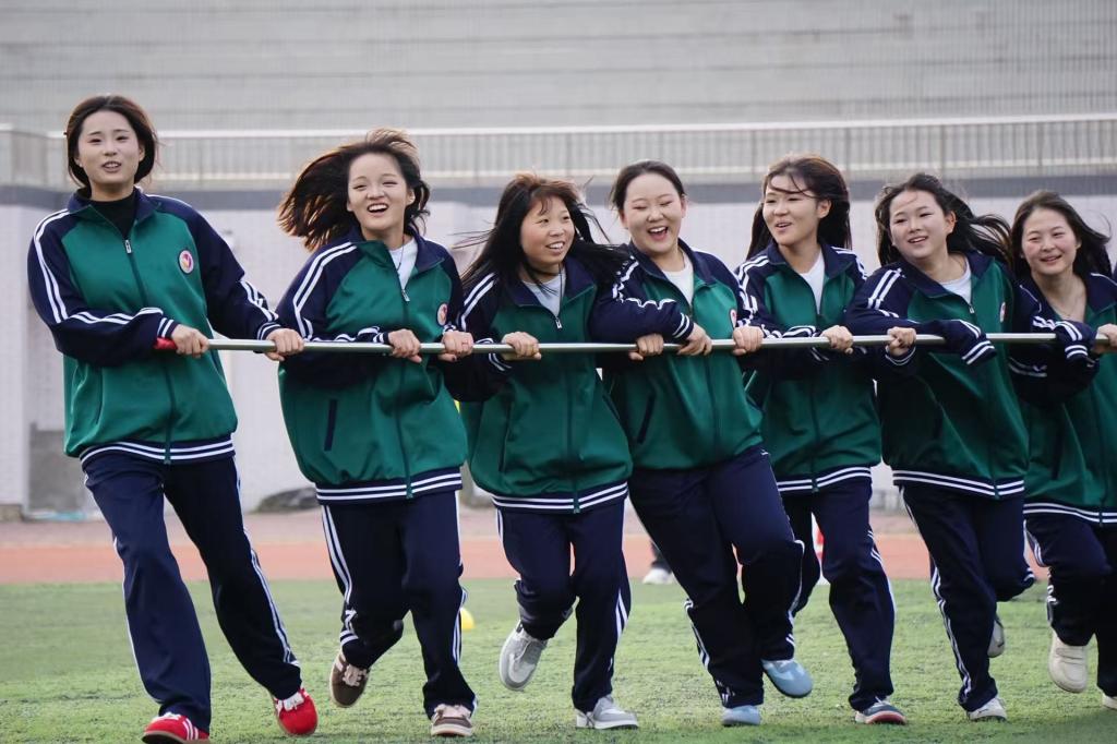 参赛的同学们和班主任一起手握横杆,团结协作,绕过旗杆,冲向终点。未参赛的同学自发当起啦啦队,加油声、欢笑声此起彼伏,赛场上瞬间欢腾值爆表。