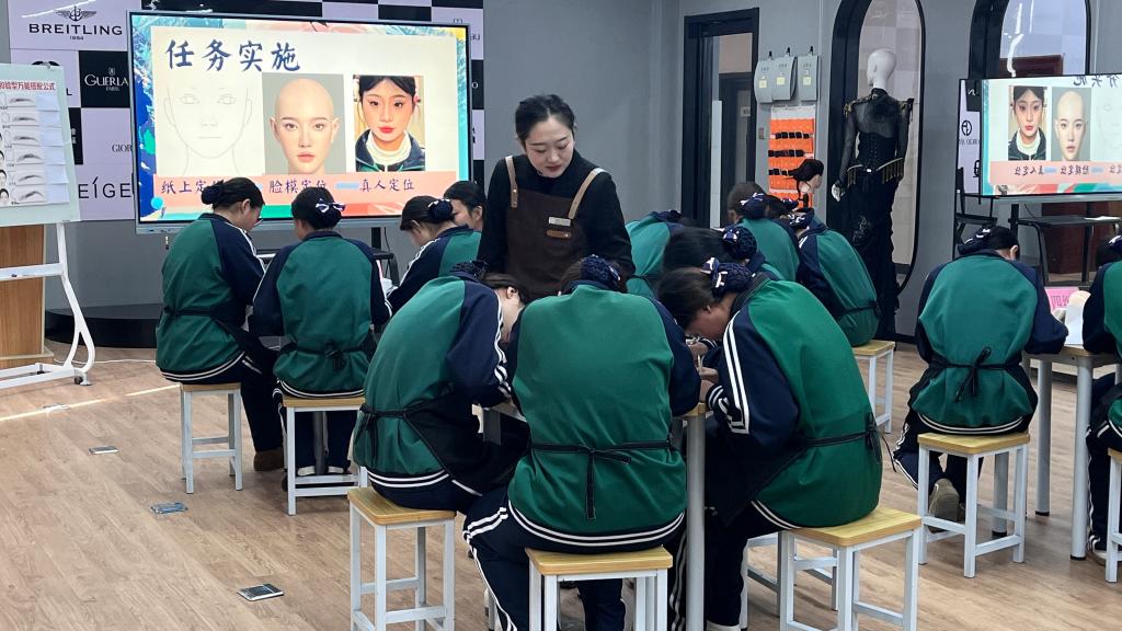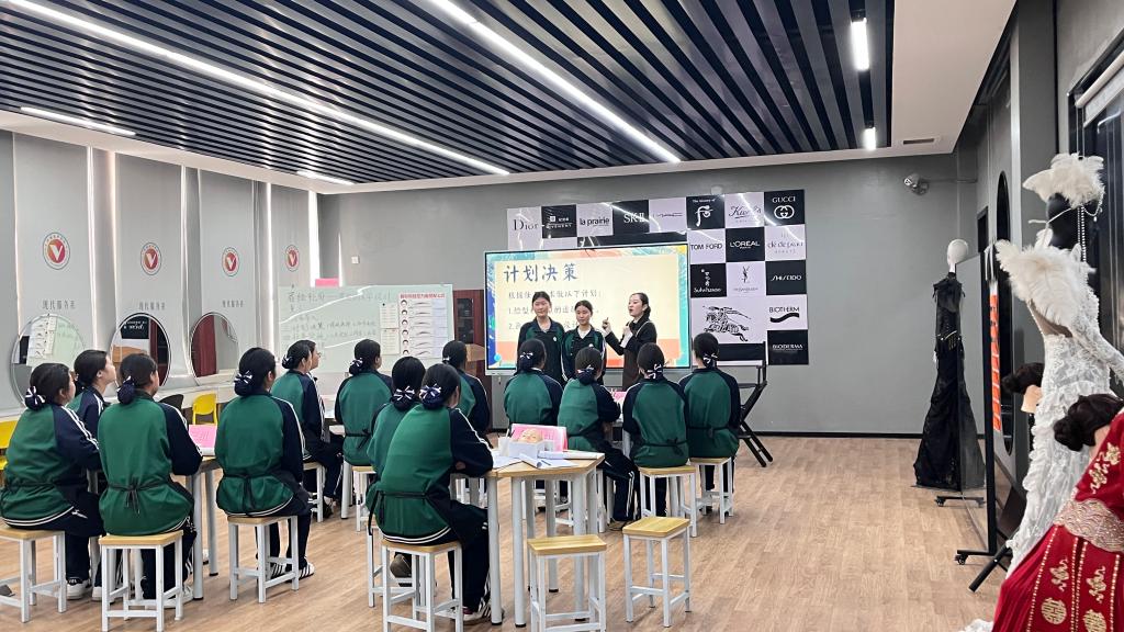 现代服务系教师程悦以《眉绘轮廓——眉型的美学设计》化妆实训任务为载体,完成说课展示与课堂教学呈现。本次教学任务以职业能力素养培育为核心导向,深度对接行业岗位实际需求,采用分组研讨、角色扮演等沉浸式教学方法,还原职业场景中的技术应用与服务流程,充分彰显工学一体化教学“工学结合”的核心内涵。观摩团专家成员对课程设计的专业性、教学实施的实操性给予高度关注,通过现场记录、实时互动等方式,系统分析工学一体化教学模式的落地成效与实践价值。