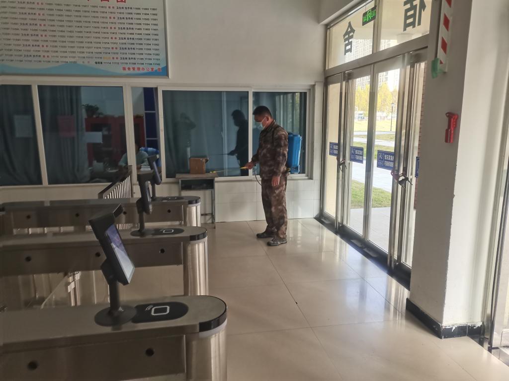 为切断病毒传播的物理途径,学院宿管中心第一时间组建由教官组成的专业消杀团队,制定“全域覆盖、重点突出”的消杀方案。消杀工作覆盖学生宿舍的每一个角落,不仅对寝室、走廊、洗手间等公共区域进行整体消毒,更针对门把手、水龙头、书桌、衣柜拉手等学生高频接触的物体表面,采用专业消毒剂进行反复擦拭,确保不留任何病毒滋生和传播的死角。