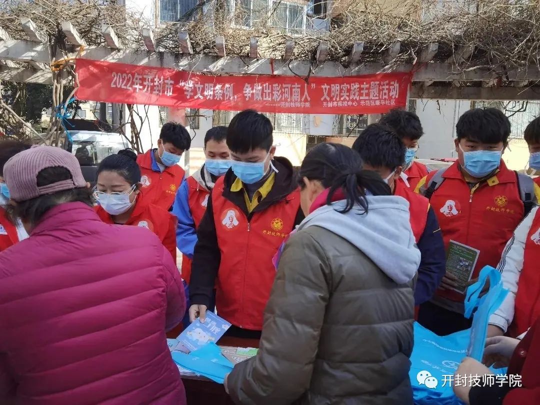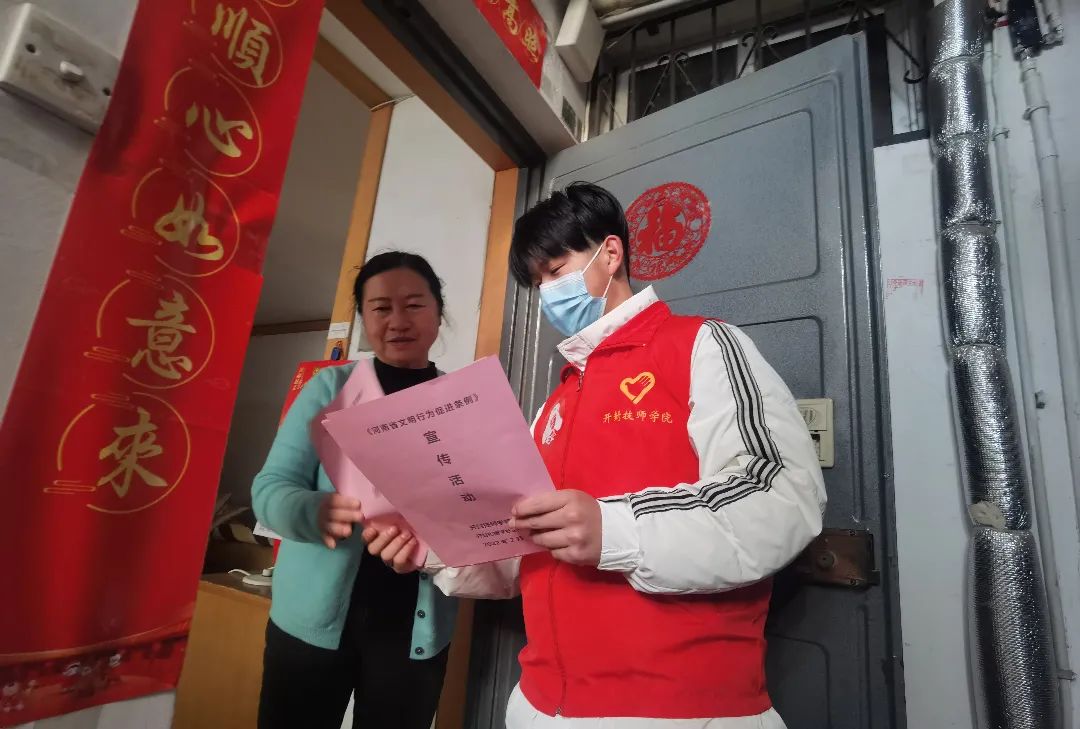 为弘扬“奉献、友爱、互助、进步”的志愿者精神,展现当代青年魅力,2022年3月1日上午开封技师学院青年志愿者服务队走进康平社区,开展“学文明条例,争做出彩河南人”活动。志愿者们通过宣传《河南省文明行为促进条例》,教育引导广大市民群众养成文明习惯,树立文明风尚。宣传之余还充分发挥专业优势,开展贴合居民生活的志愿服务活动,让人民群众深切感受到技工教育给生活带来的便捷美好。