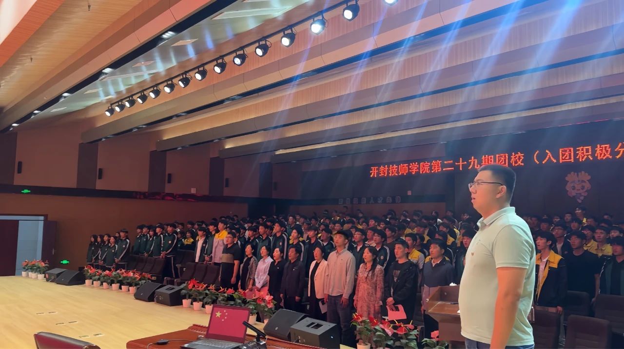2025年5月8日下午,开封技师学院第二十九期团校(入团积极分子培训班)开班仪式在五楼报告厅隆重举行。院党委书记樊清忠,院党委委员、副院长王瑜,团委书记董传翠,团委副书记陈今出席会议,会议由团委副书记熊伟主持。各院系团总支书记和全院400名入团积极分子参加了本次仪式。