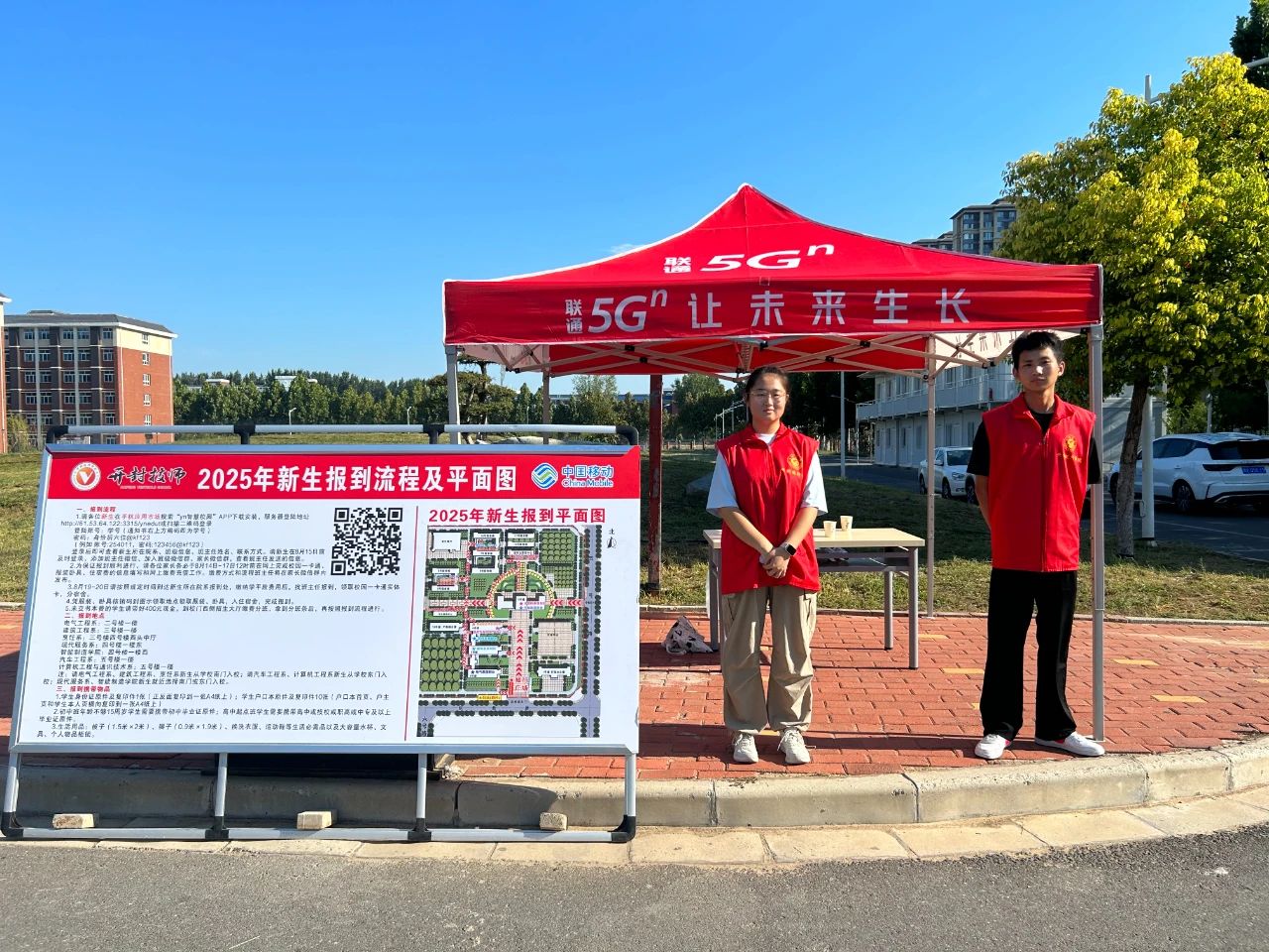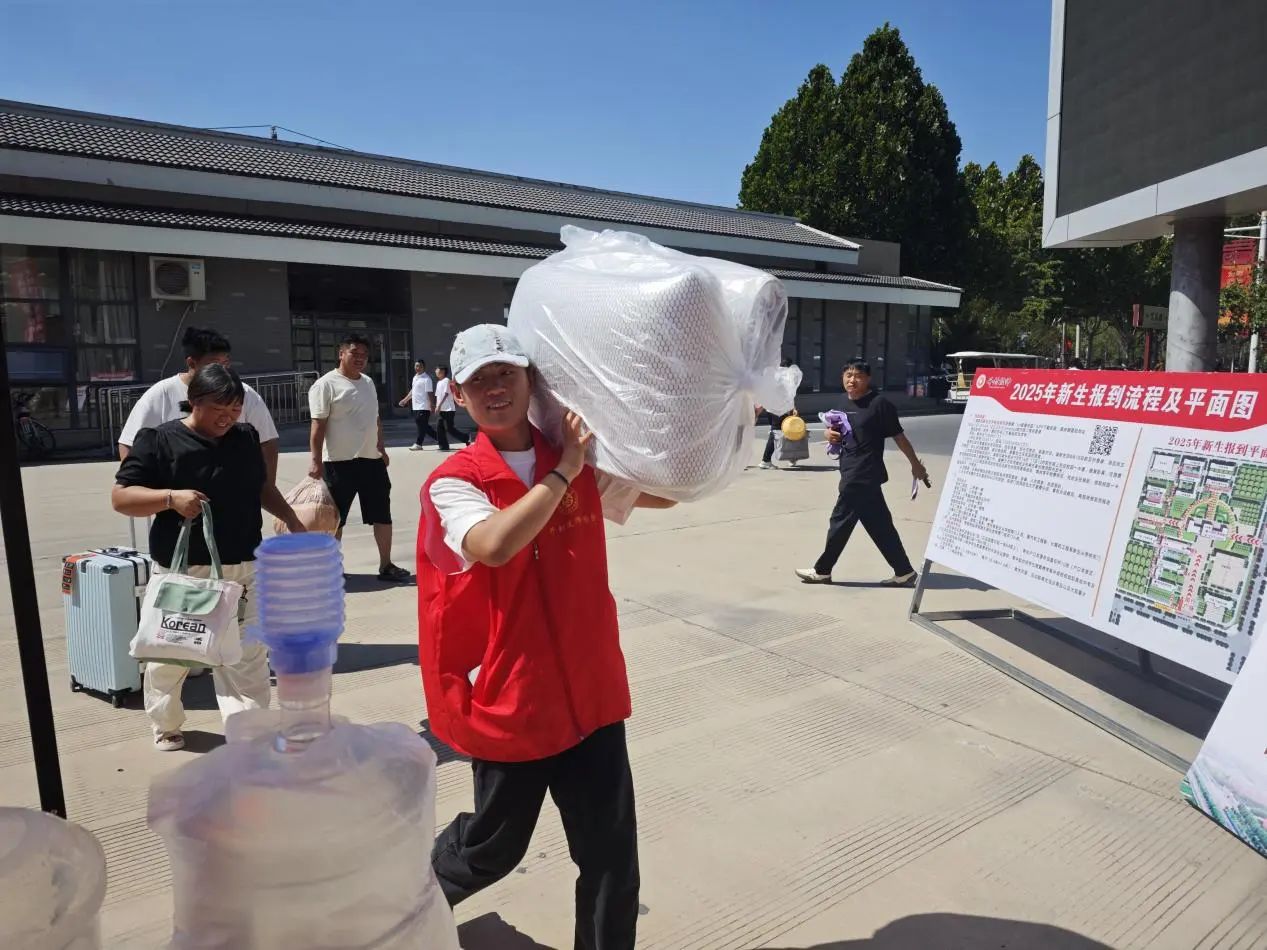 开学报到日一大早,身着红马甲的志愿者们已早早在校园各个关键点就位。校园主干道两侧,他们忙着路线指引与行李搬运;贴心的学长学姐们更以行动为新同学搭建起一条充满温情的通道。