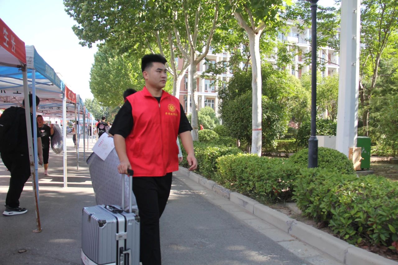 挥汗如雨的行李搬运是最温情的告白,热情的咨询指导更是志愿精神的传承。迎新期间,暖心助人、热情奉献的志愿者们成为校园里一道亮丽的风景线。从手续办理到搬运行李,从班级报到到宿舍入住,新生入校后的每个环节,都能看到开封技师学院志愿者们忙碌的身影。