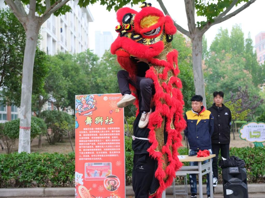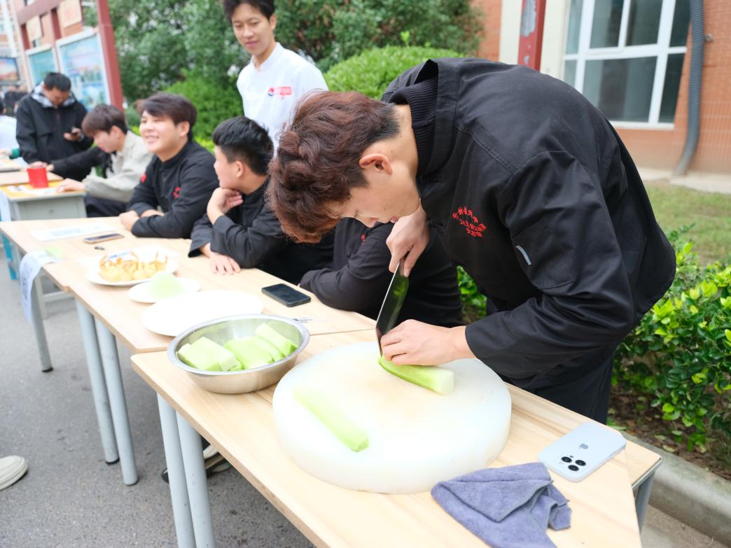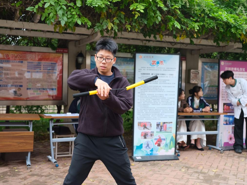 纳新现场更是创意十足、亮点纷呈。各社团提前精心布置展位,色彩鲜明的宣传海报上不仅印有社团简介与活动照片,还标注了招新要求与联系方式,部分社团还制作了文创周边、社团成果等宣传物料,极具吸引力。社团辅导老师与社员们更是“各显神通”,拿出看家本领展现社团魅力:“智铣先锋社团”招新现场,俨然成为一场“微型机械艺术展”,各式铣床作品错落陈列,瞬间抓住过往同学的目光,让冰冷的金属与机械,绽放出令人惊叹的匠心温度;“果酱画社团”的社员们手持特制画笔,将洁白瓷盘铺展成画布,浓稠的草莓酱、芒果酱、蓝莓酱化作天然“颜料”在盘间勾勒出灵动图案,让香甜气息与创意色彩交织出独特吸引力;“武术社团”的社员们配合默契,拳术、双截棍表演刚劲有力,每一个动作都赢得满堂喝彩。生动的表演、鲜活的分享、真诚的互动,深深吸引了在场新生,大家围在各个展位前,或认真聆听介绍,或积极提问咨询,或现场报名体验,原本宽敞的广场变得人头攒动、热闹非凡,每一处展位前都排起了小小的队伍,成为校园里一道充满青春气息的亮丽风景线。