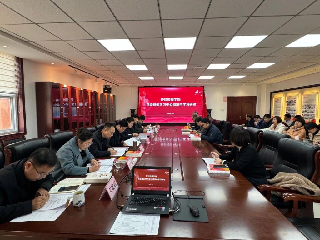 12月2日,开封技师学院召开党委理论学习中心组(扩大)会议,深入学习党的二十届四中全会精神。党委书记樊清忠主持并讲话,党委班子成员、各院系(处)室负责人、各党支部书记参加学习研讨。