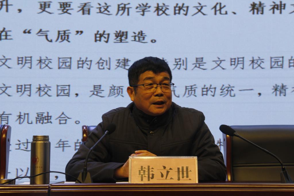 文明校园创建专家韩立世应邀为学院全体教职工作了生动的文明校园创建专题讲座。韩老师结合我院实际,客观分析了我院今年全国文明校园创建工作面临的机遇与挑战,并对下一阶段创建工作作了具体指导。
