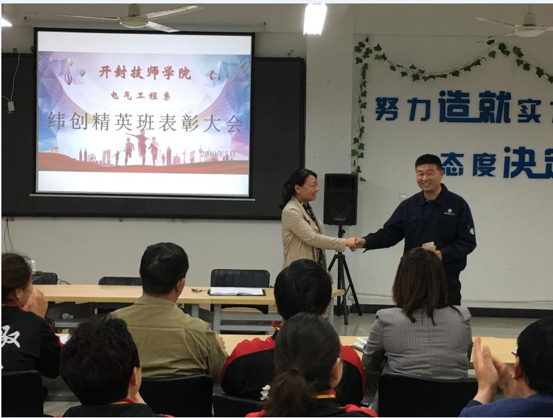 电气工程系纬创精英班,是我院为深入加强校企合作,扩宽学生就业渠道。与2017年9月与纬视晶光电(昆山)有限公司共同组建和培养的校企合作订单班。该班自组建以来在班主任寇爽老师的带领下坚持以企业文化为导向、企业管理理念为背景的制度及文化营造班级氛围。同学们团结向上、学习氛围浓厚在学院、企业共同考核和活动中都有突出成绩。为了表扬优秀,鼓励他人2019年5月13日下午企业领导专门到学校为学生颁发奖学金。