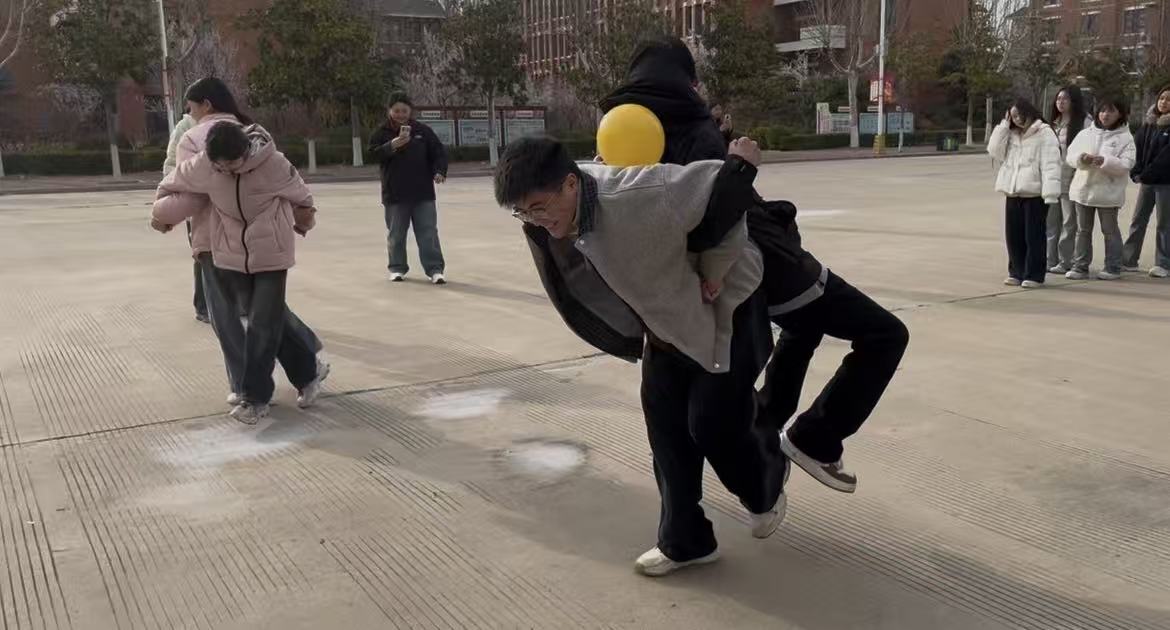 接下来的团体辅导活动将培训氛围推向高潮。 “旱地龙舟”项目里,大家同乘“龙舟”,步调一致向前行进,在奋勇争先的比拼中,增强了团队的凝聚力与默契度。“开心背夹球”活动中,同学们两两结对、背靠背协作运球,在默契配合与接力比拼中,进一步提升了彼此的信任度与协同配合能力。“一圈到底”活动中,同学们手拉手围成圆圈,默契配合,通过身体的灵活扭动传递呼啦圈,在齐心协力完成挑战的过程中,培养了团队协作意识与沟通能力。