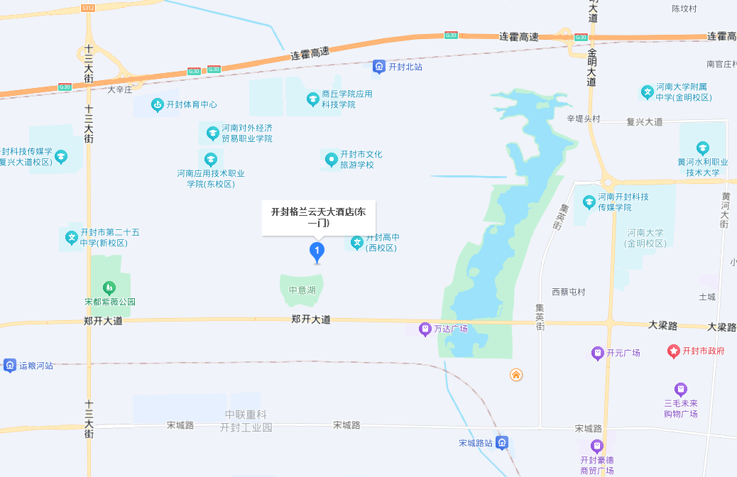 打车路线②:开封宋城路站(城际铁路站)至开封格兰云天大酒店,约6.4公里,约20分钟。