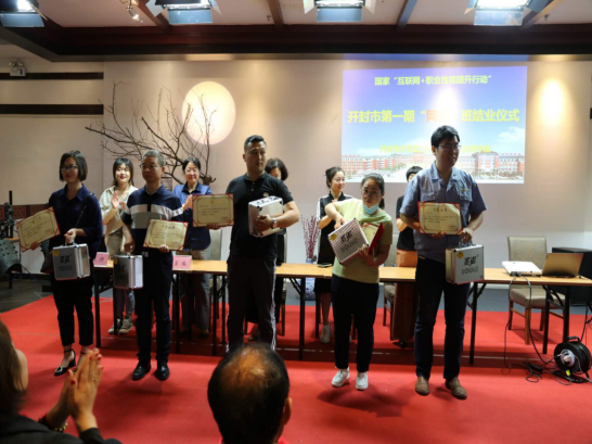 最后,随着王瑜科长“祝愿大家在就业创业的道路上越走越好,我们会继续努力,让更多的群众享受到国家免费培训的好处”话音落地,结业仪式顺利结束。共有68名学员拿到结业证书,其中10名学员获得“优秀学员”荣誉称号。这次“网红”培训班的顺利开展,不仅使学员受益,而且为学院带来了较好的社会效益,树立了开封技师学院培养技能人才的良好品牌形象。为地区稳就业、促发展做出了不小的贡献。