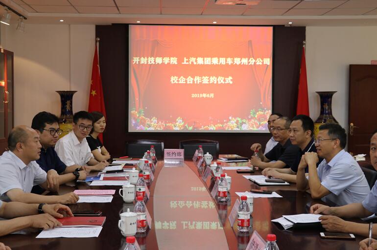 2019年6月18日下午,开封技师学院与上汽集团乘用车郑州分公司校企合作签约仪式在院办公楼第一会议室顺利举行。学院党委书记、院长陈世林,副院长张宏,招生就业处、教务处、机械工程系、汽车工程系等部门相关领导、老师参加了签约仪式。
