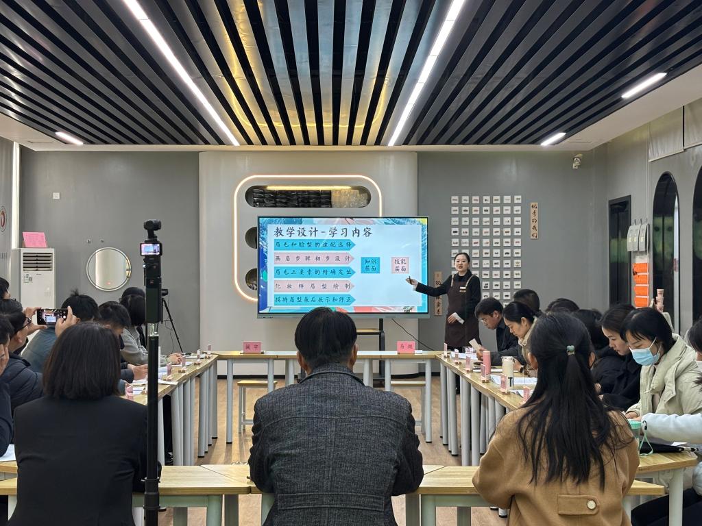 现代服务系教师程悦以《眉绘轮廓——眉型的美学设计》化妆实训任务为载体,完成说课展示与课堂教学呈现。本次教学任务以职业能力素养培育为核心导向,深度对接行业岗位实际需求,采用分组研讨、角色扮演等沉浸式教学方法,还原职业场景中的技术应用与服务流程,充分彰显工学一体化教学“工学结合”的核心内涵。观摩团专家成员对课程设计的专业性、教学实施的实操性给予高度关注,通过现场记录、实时互动等方式,系统分析工学一体化教学模式的落地成效与实践价值。