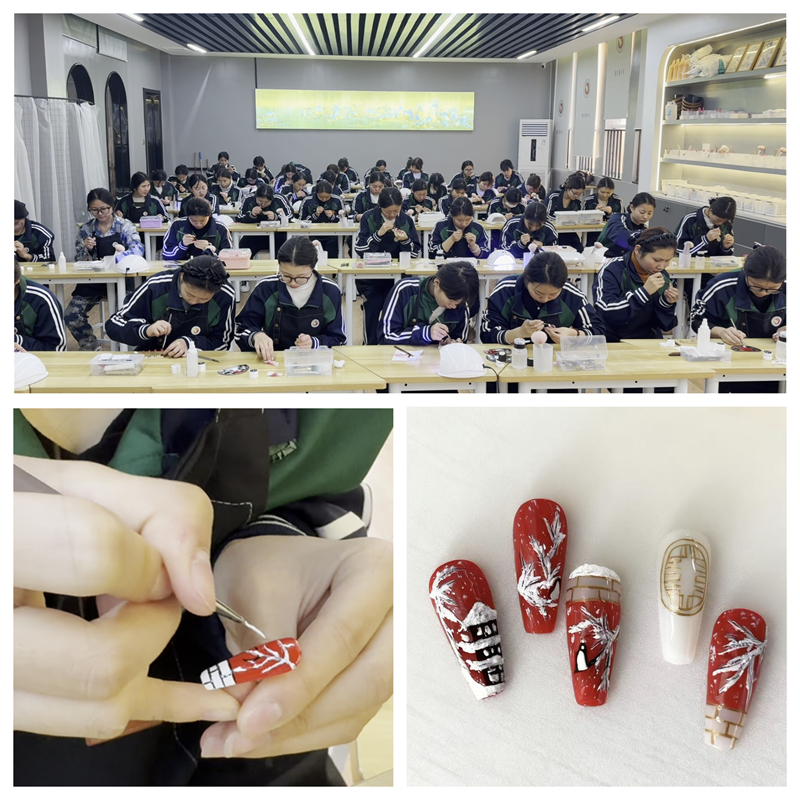 在系部的规范统筹下,考核现场秩序井然,学生们沉着应战,熟练运用课堂所学展现专业功底。美容护理环节,规范的手法尽显扎实基础;化妆造型中,审美创意与实操技巧巧妙融合;美甲美睫模块,对细节的精准把控让人印象深刻,充分彰显了学子们良好的职业素养与专业潜力。
