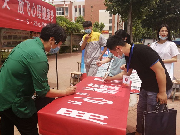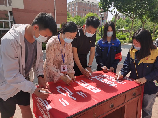本次签名横幅的内容为“用‘心’战疫,用‘心’呵护心的健康”,现场得到了全院师生的热烈关注和积极参与,张宏副院长、王占林处长、王国新处长、单智习处长及众多师生纷纷在横幅上签下了自己的姓名,用行动支持学院阳光心理抗疫活动。本次活动旨在宣传心理健康知识,配合我院“5.25心理健康节”的活动开展,引导同学们了解相关知识,提高大家心理素质,营造出良好的心理文化氛围。用签名的形式提高学生的参与性,加强互动和交流,促进心理健康成长。