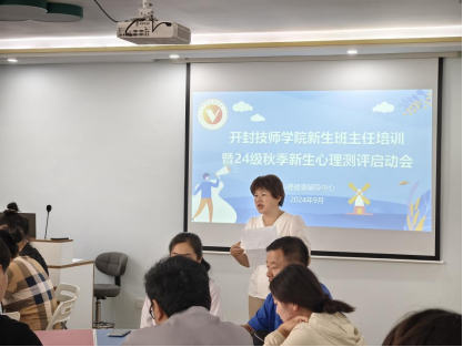 心理测评于2024年9月5日下午16时启动,本次测评启动会由学生处处长单智习主持,心理健康辅导中心杨珂老师向在场的新生班主任老师们进行了专业的测前培训和指导。