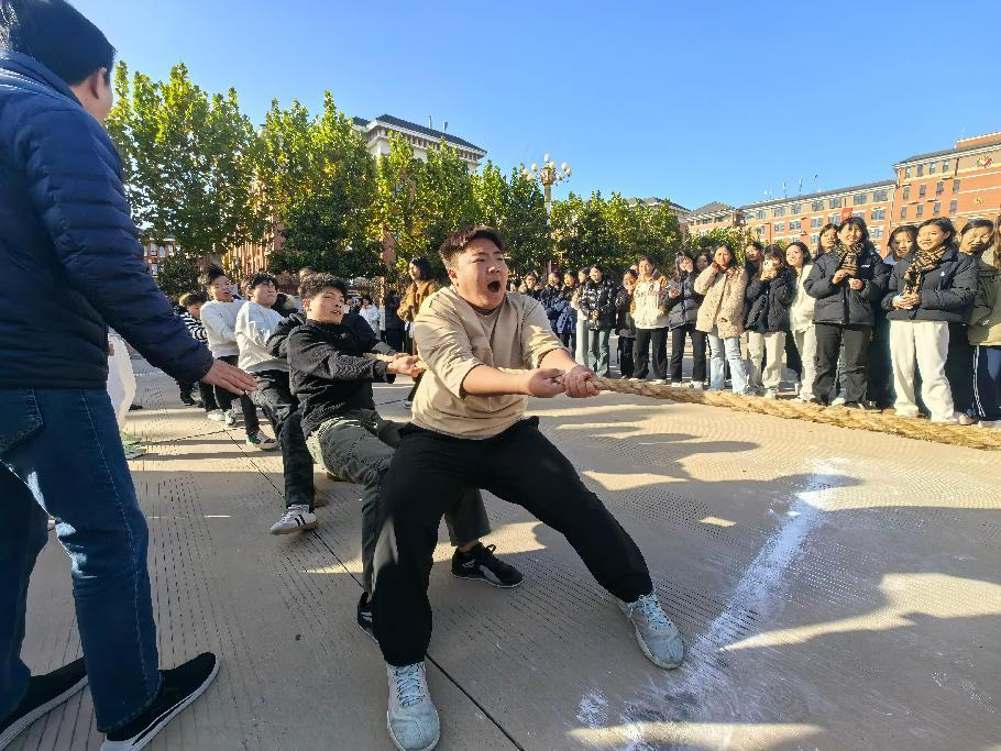为了丰富同学们的课余文化生活,展现开封技师学院学子朝气蓬勃、健康向上的精神面貌,同时也充分体现了院党委对广大师生身心健康的关心与关怀。在院党委的关心支持下,2024年11月27日上午,由院团委、教务处组织的“跃动青春,绳采飞扬”一根绳比赛拔河项目比赛在学院知行广场拉开帷幕,以院系为单位共7支队伍参加此次比赛。
