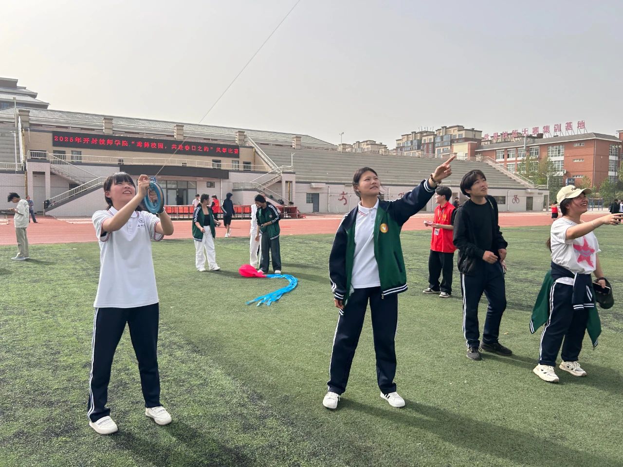 春风和煦,筝舞蓝天,4月16日,开封技师学院的操场上绽放着青年学子明媚的笑脸,以"鸢舞校园,共赴春日之约"为主题的风筝比赛在师生们的欢声笑语中圆满落幕。四十余只承载着创意与梦想的纸鸢乘着春风翩跹起舞,将四月的天空装点成流动的画卷,整个校园洋溢着运动的活力与团结协作的温暖。