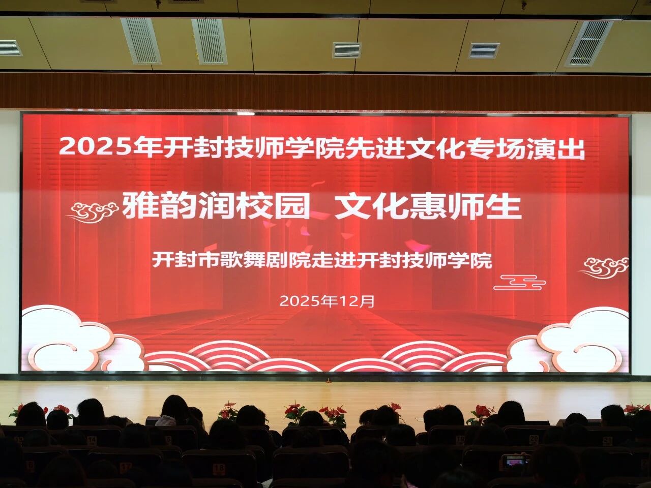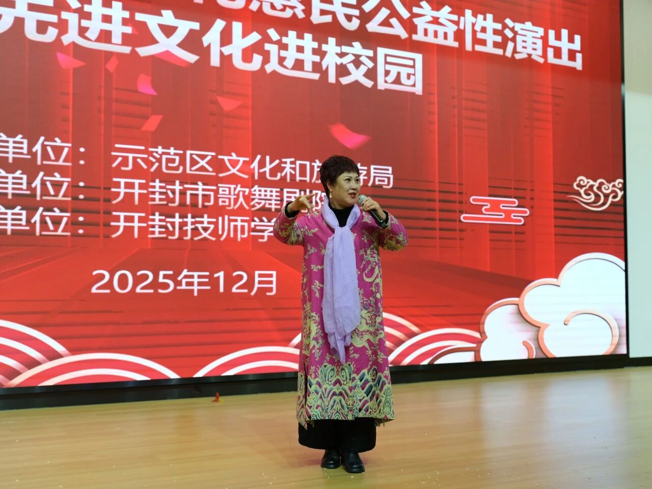 冬阳煦暖,艺香漫溢。在2026年元旦佳节即将到来之际,12月30日下午,一场由示范区文化和旅游局主办、开封市歌舞剧院承办的文化惠民公益性演出走进开封技师学院,为全校师生送上了一份兼具艺术质感与人文温度的节日厚礼。